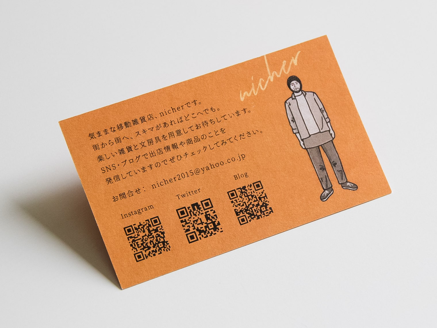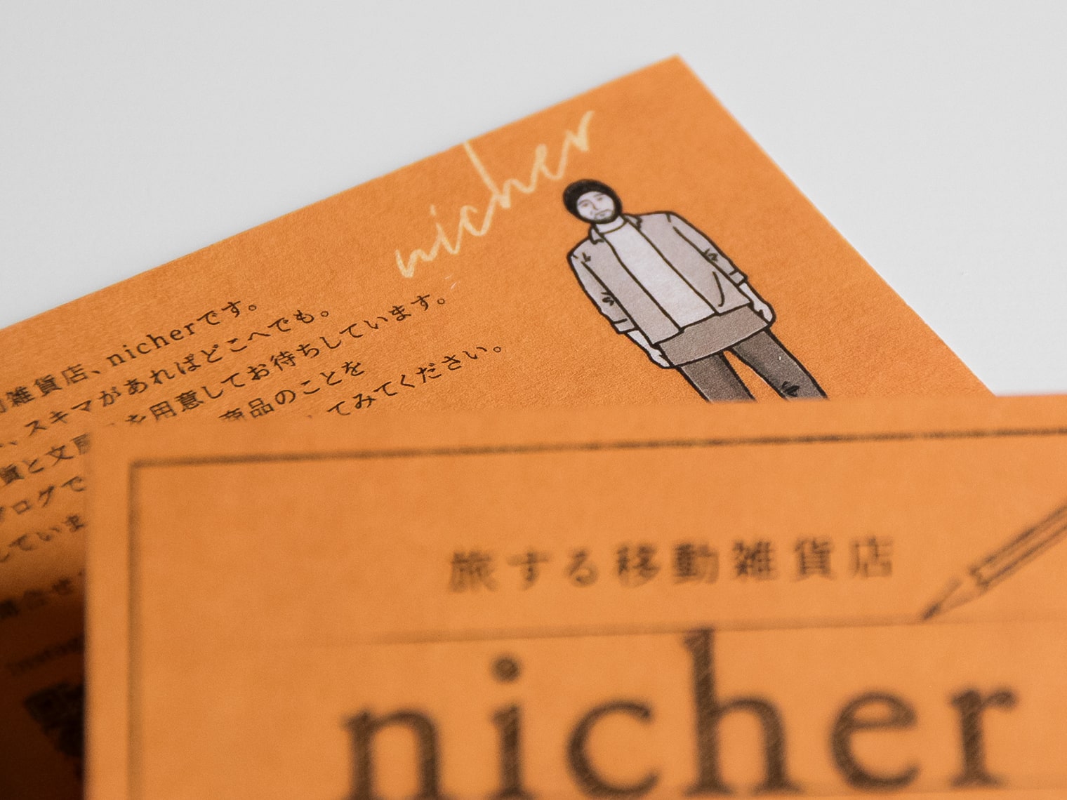 宮城県を中心に移動販売でユニークな文具・雑貨を販売する、nicher様のショップカード制作事例です。